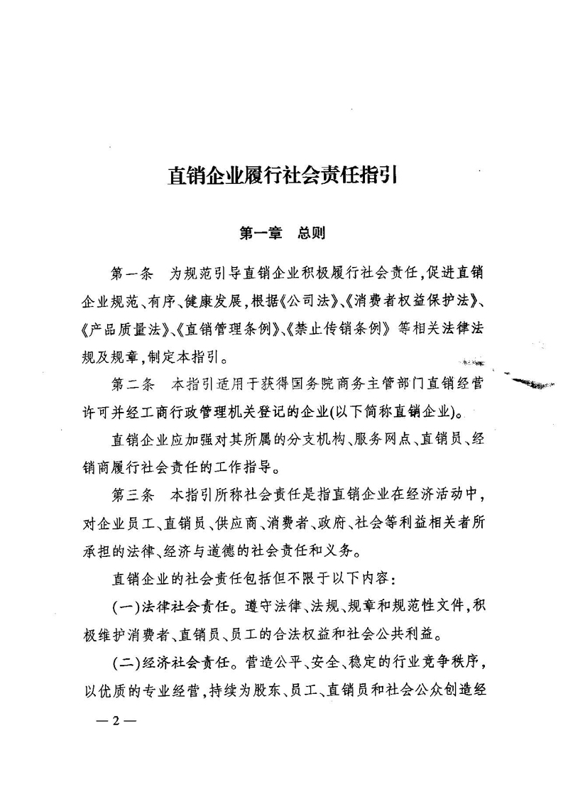《直销企业履行社会责任指引》